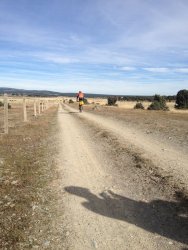 Dejamos el pueblo y abandonamos la carretera y entramos por pistas llanas y rodadoras hacia Fuente Roble de Salvatierra, a partir de aquí no sabíamos la que nos esperaba, tras rodar por pistas y senderos llegamos a un cruce donde la flecha nos indicaba la subida al Puerto de Dueñas a la izquierda, un puerto de puro sendero y pedregal, duro, agotador pero cuando lo culminas las vistas que puedes observar te hacen olvidar lo sufrido durante la subida, aunque no podemos relajarnos ya que la bajada es igual de pedregosa y técnica. Después de salir de este sendero, volvemos a las pistas rodadoras donde Encarna (una Lugareña) en Calzadilla de Mendigos nos ofreció amablemente un agua fresquita entre gallos y gallinas. Continuamos después de esta breve pausa para reponer líquidos hacia San Pedro de Rozados donde comimos la pasta que hizo Toño la noche anterior. Ya solo nos restan 24 km para llegar al final de etapa Salamanca , pero como todo no podía salirnos redondo a tan solo 1km de la ciudad y viendo la Catedral de fondo rompemos la cadena de la bicicleta,tras varios minutos de reparacion llegamos a Salamanca.